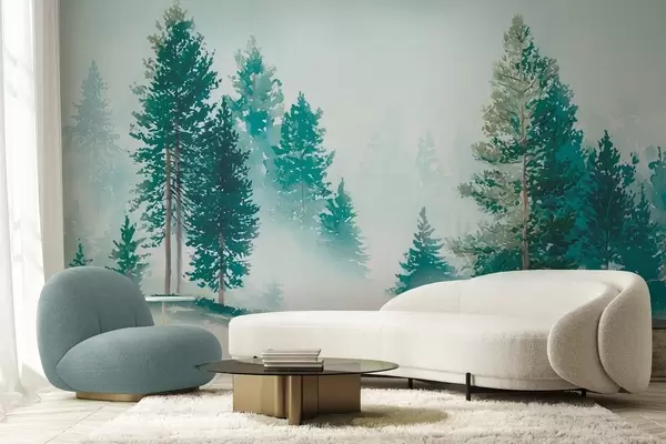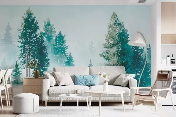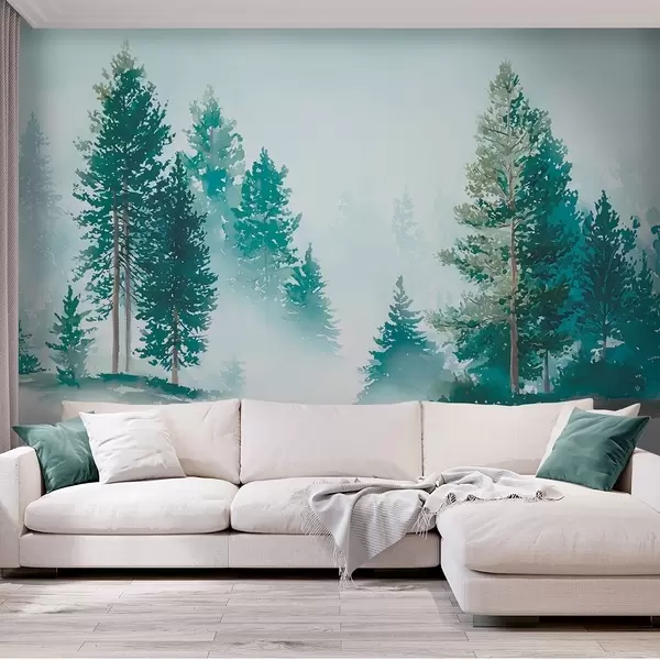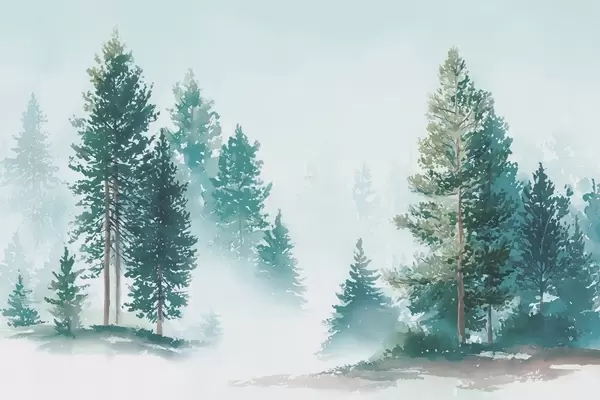 Fototapeter Tåkete furuskog i akvarellstil Nr. w09444