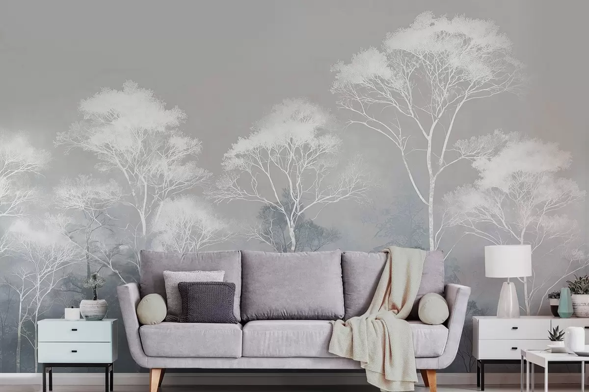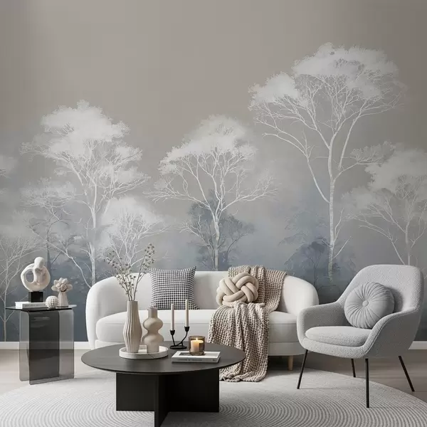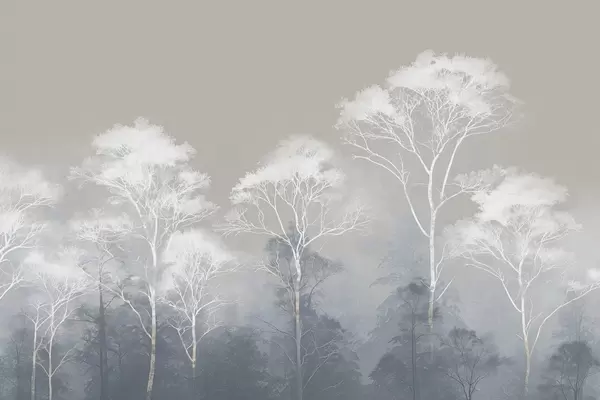 Fototapeter Minimalistiske trær i blågrå farger, i tåke Nr. w09448
