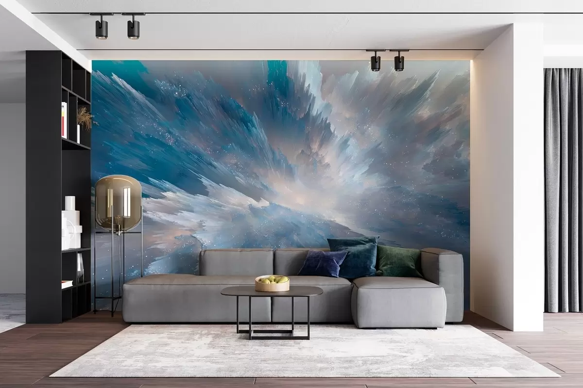 Fototapeter Abstrakt kosmisk himmelglød i isblå toner Nr. w09461