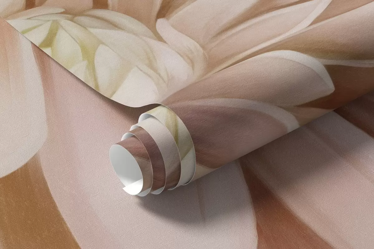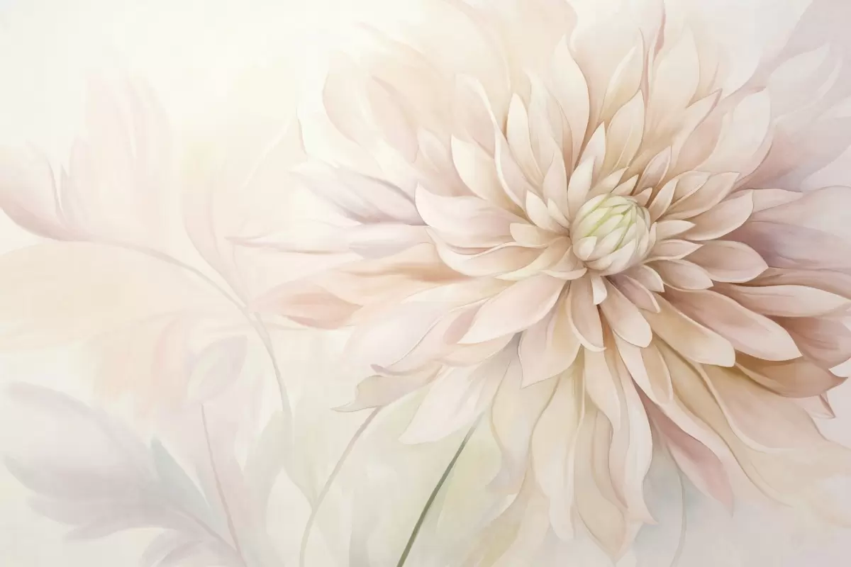 Fototapeter En lyserosa dahlia-blomst med mange kronblader, myk teksturert pastellbakgrunn med innslag av grønt og beige Nr. w09470