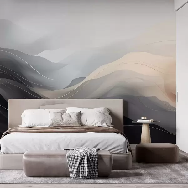 Fototapeter Abstrakte tåkete bølger i grå-kremfargede toner med gule linjer Nr. w09504