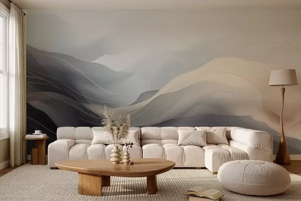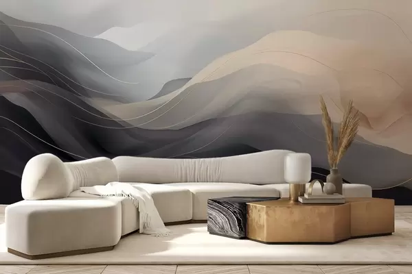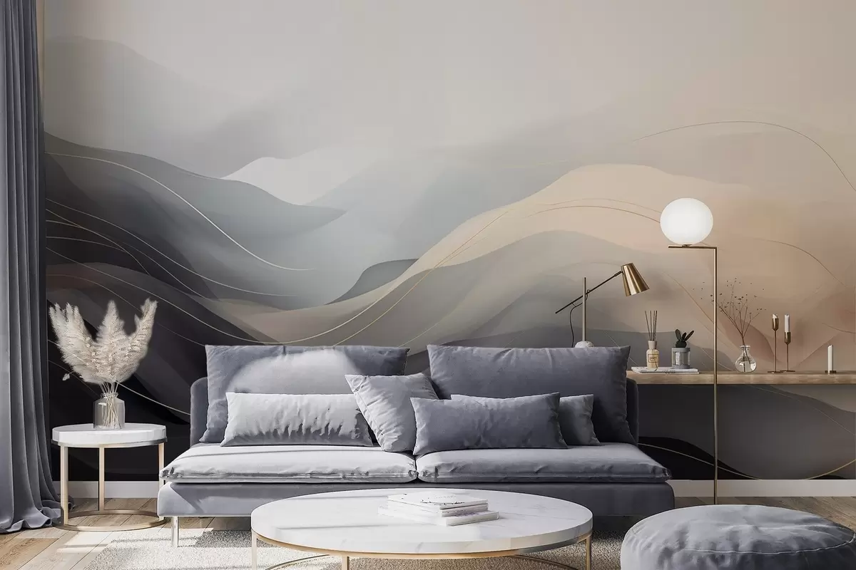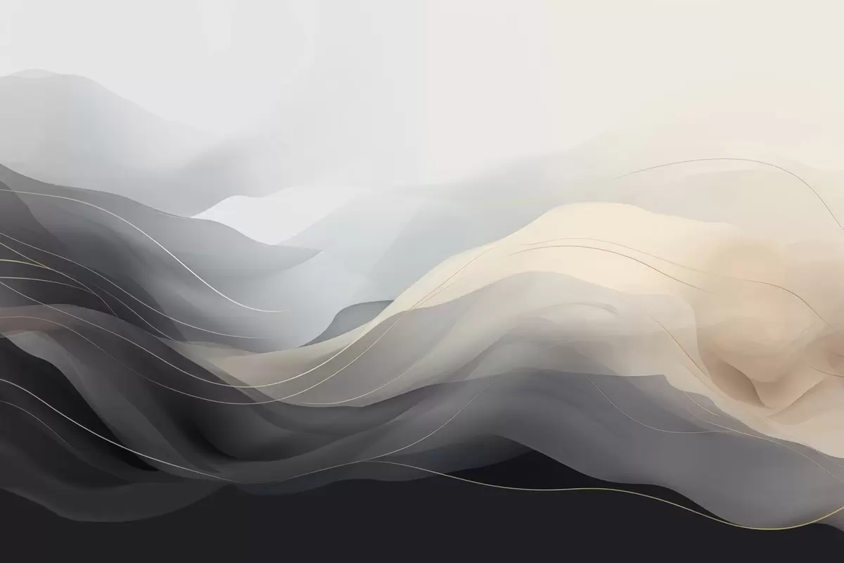 Fototapeter Abstrakte tåkete bølger i grå-kremfargede toner med gule linjer Nr. w09504