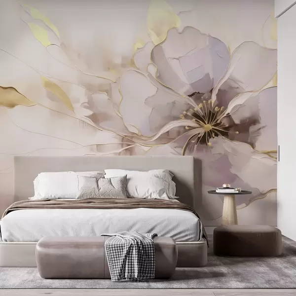 Fototapeter Blå blomst med gule detaljer i en abstrakt penselstrøk-stil Nr. w09505