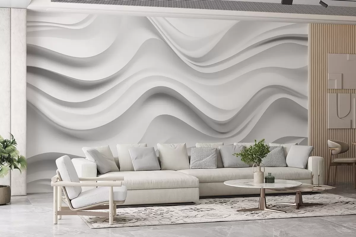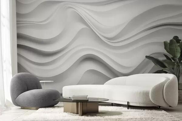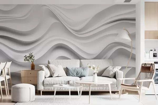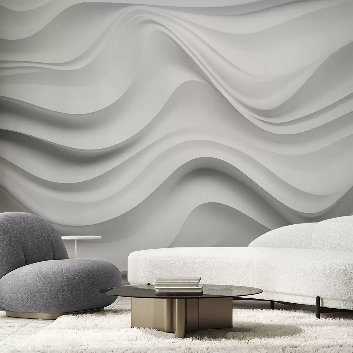 Fototapeter Svart-hvitt abstrakt 3D-komposisjon med glatte bølger Nr. w09506