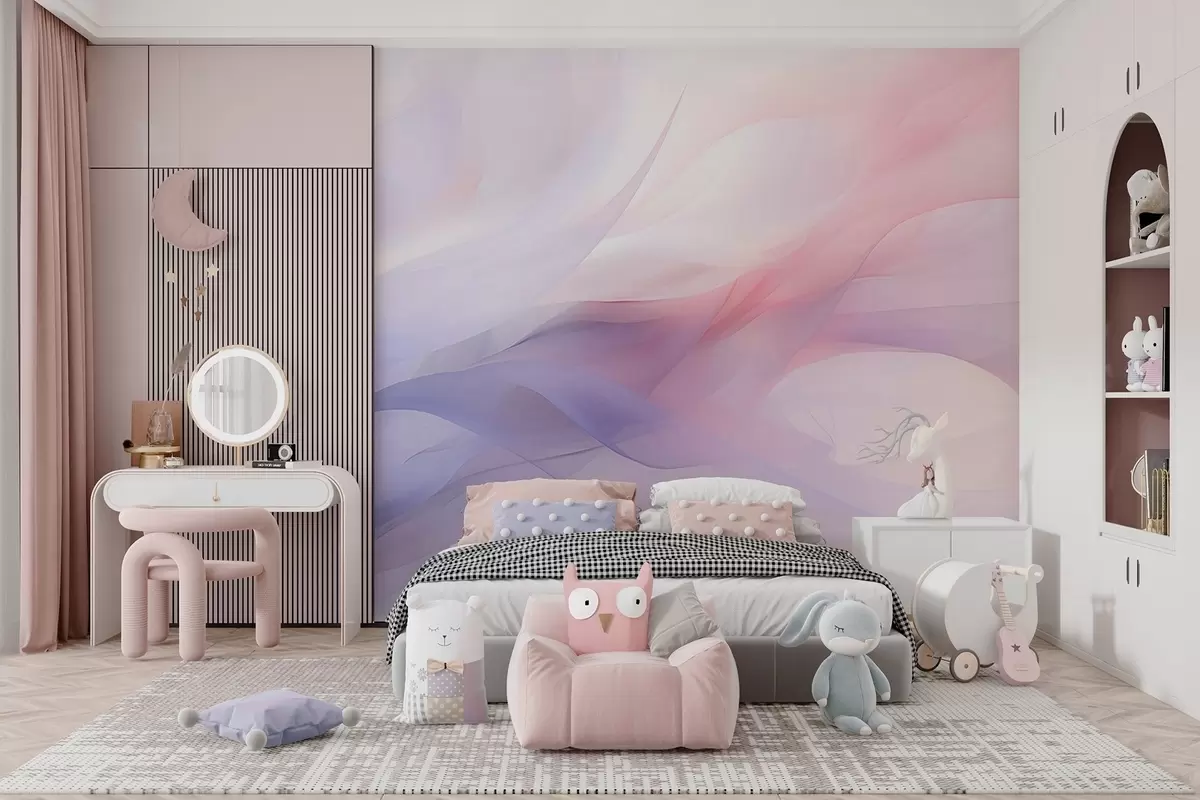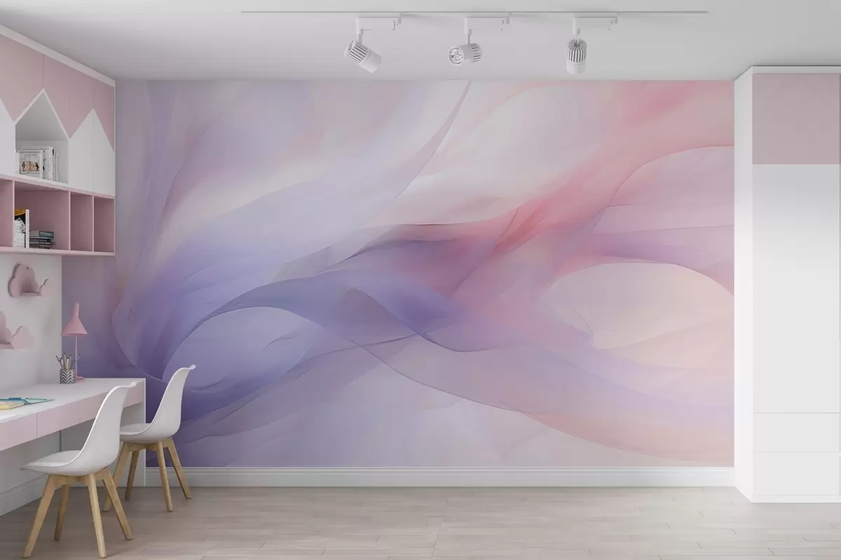 Fototapeter Myke abstrakte bølger i blå og rosa toner Nr. w09508