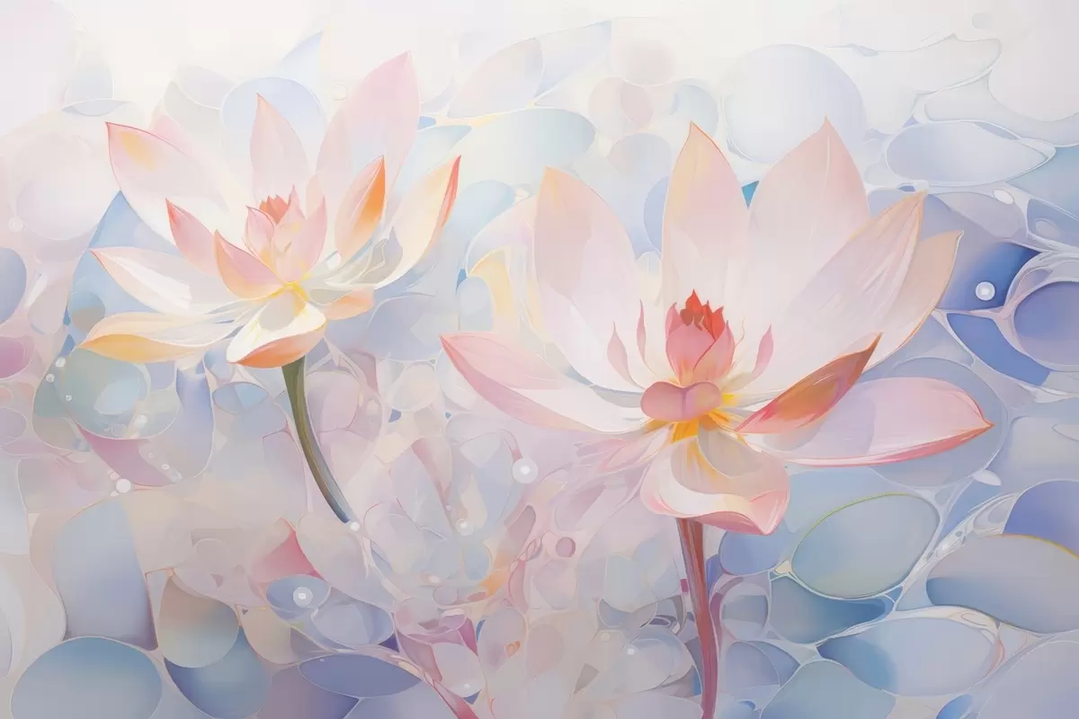 Fototapeter Myke pastellfargede lotusblomster i akvarellstil Nr. w09512