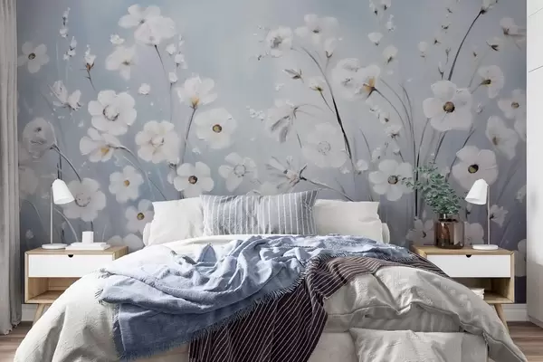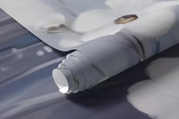 Fototapeter Hvite blomster mot en blå himmel i oljemaleristil Nr. w09516