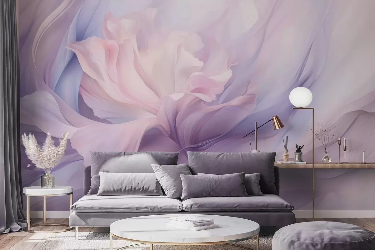 Fototapeter Mild blomsterduft: en luftig blomst i en pastellfarget lilla tåke Nr. w09517