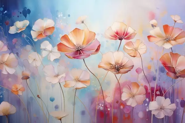 Fototapeter Lyse villblomster i akvarellsprutstil Nr. w09521