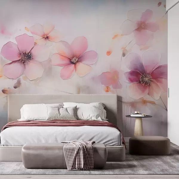 Fototapeter Gren med rosa blomster i akvarellstil Nr. w09522