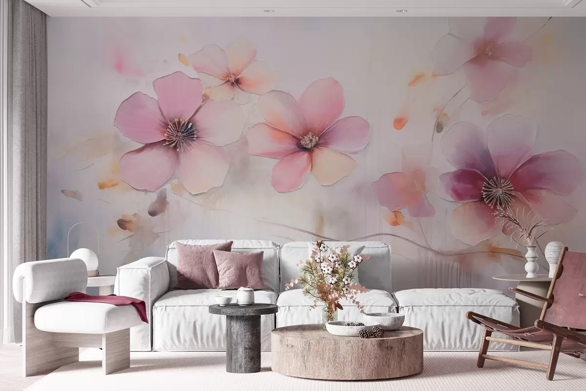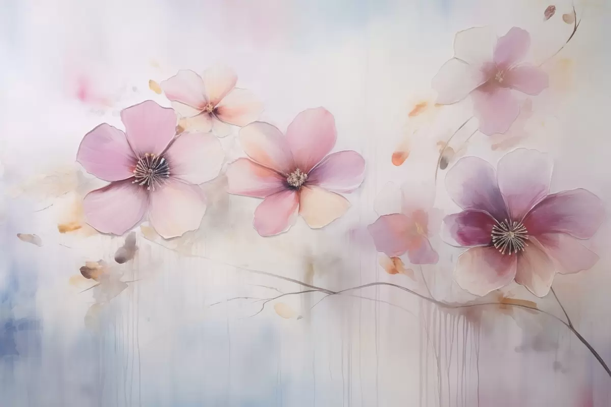 Fototapeter Gren med rosa blomster i akvarellstil Nr. w09522