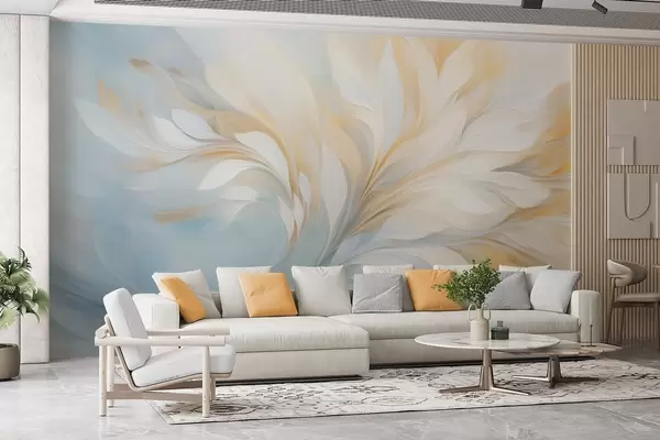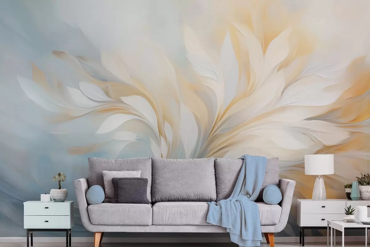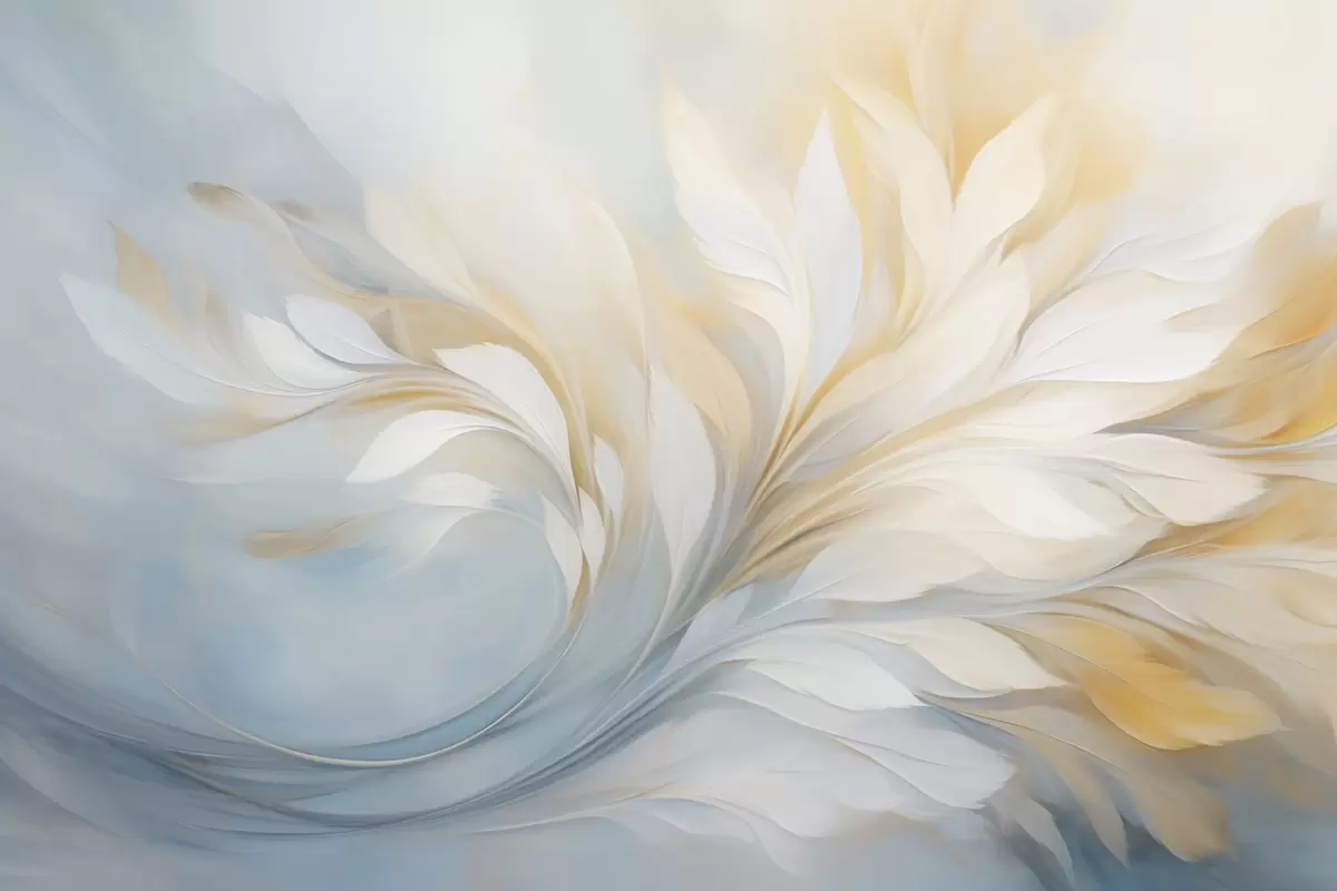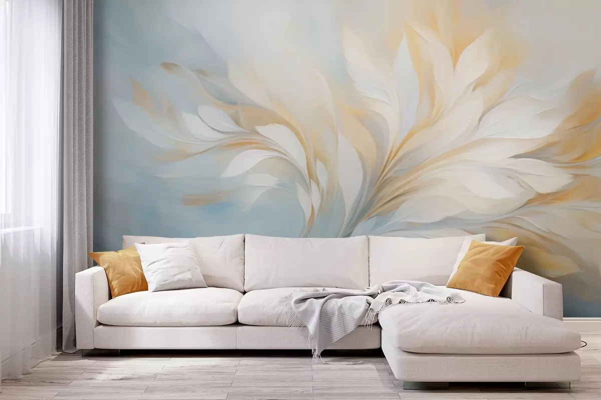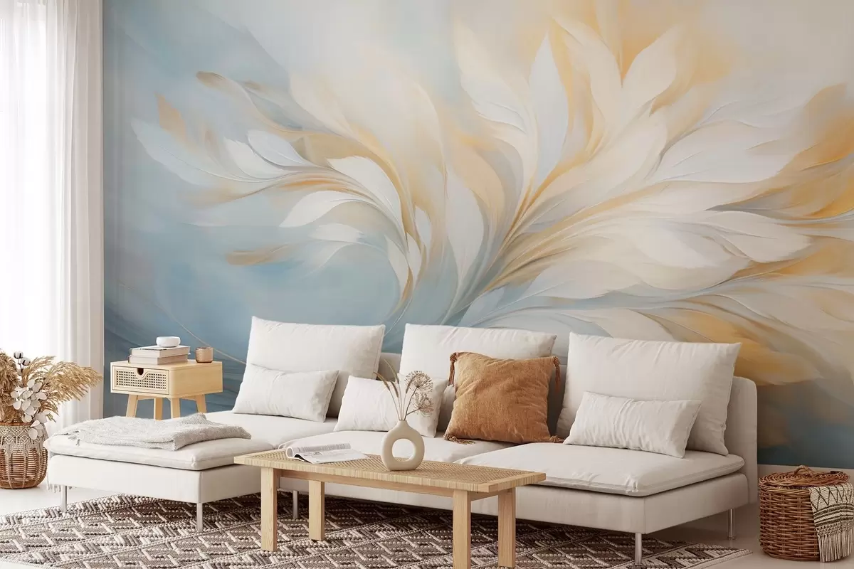 Fototapeter Abstrakt komposisjon av glatte fjærlignende former i gule og blå toner Nr. w09525