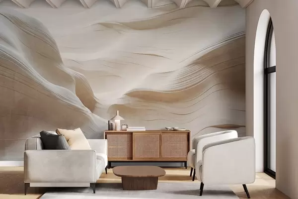 Fototapeter Sandsteinskløft med strukturerte vegger med glatte, flytende kurver og teksturer, naturlig skjønnhet, minimalisme Nr. w09533
