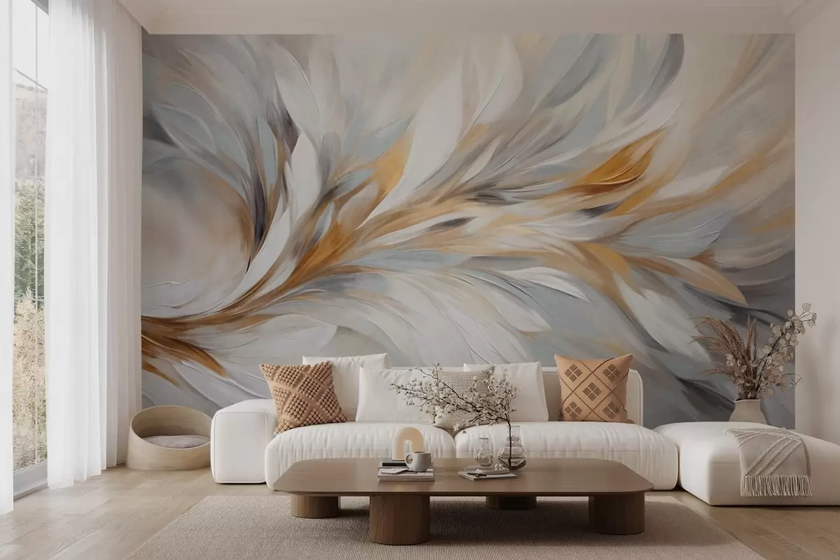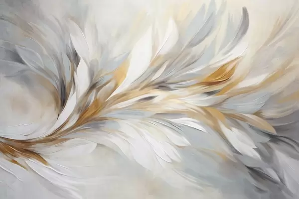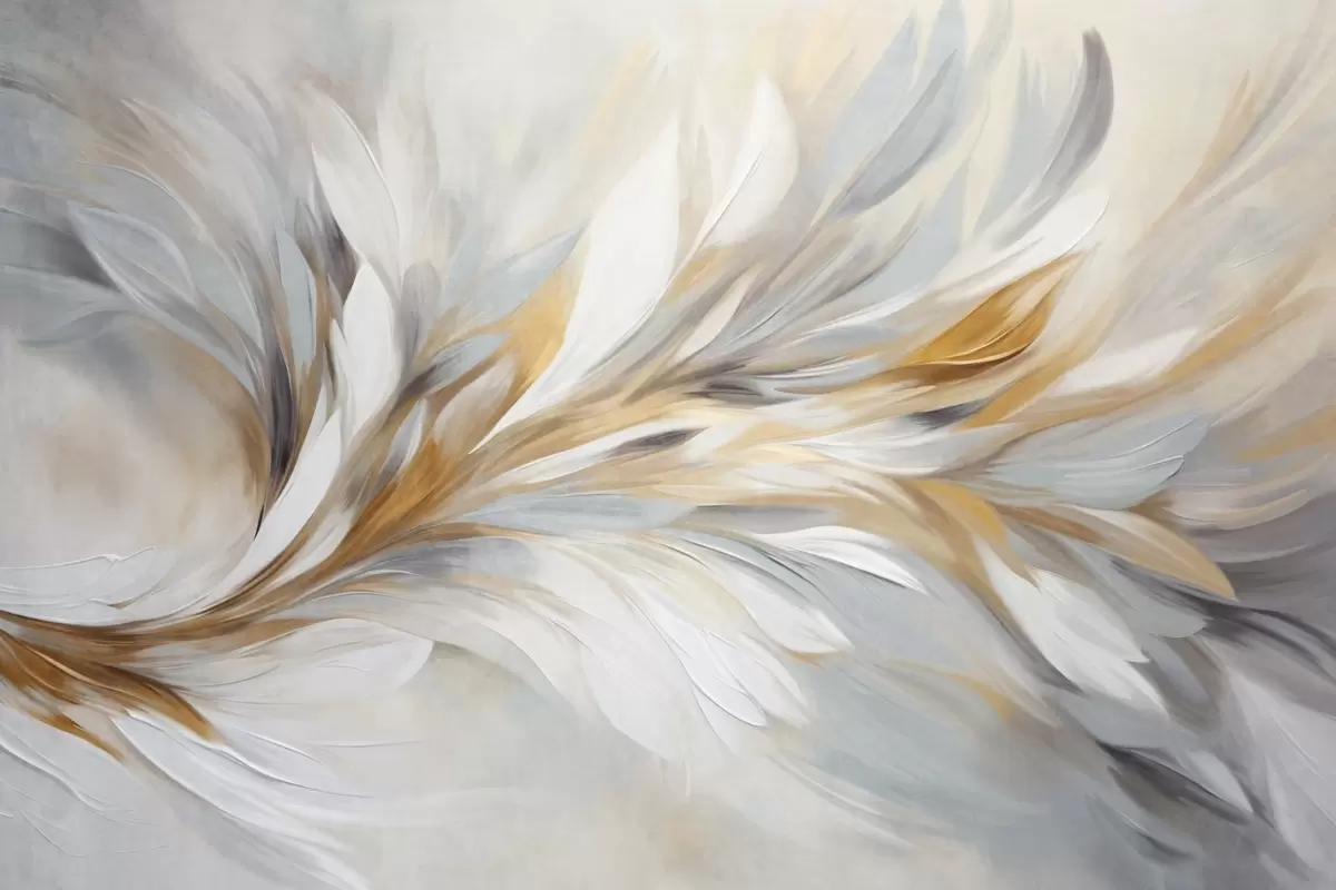 Fototapeter Abstrakt malestil med hvite, gule og grå teksturerte penselstrøk på en myk, lys bakgrunn Nr. w09552