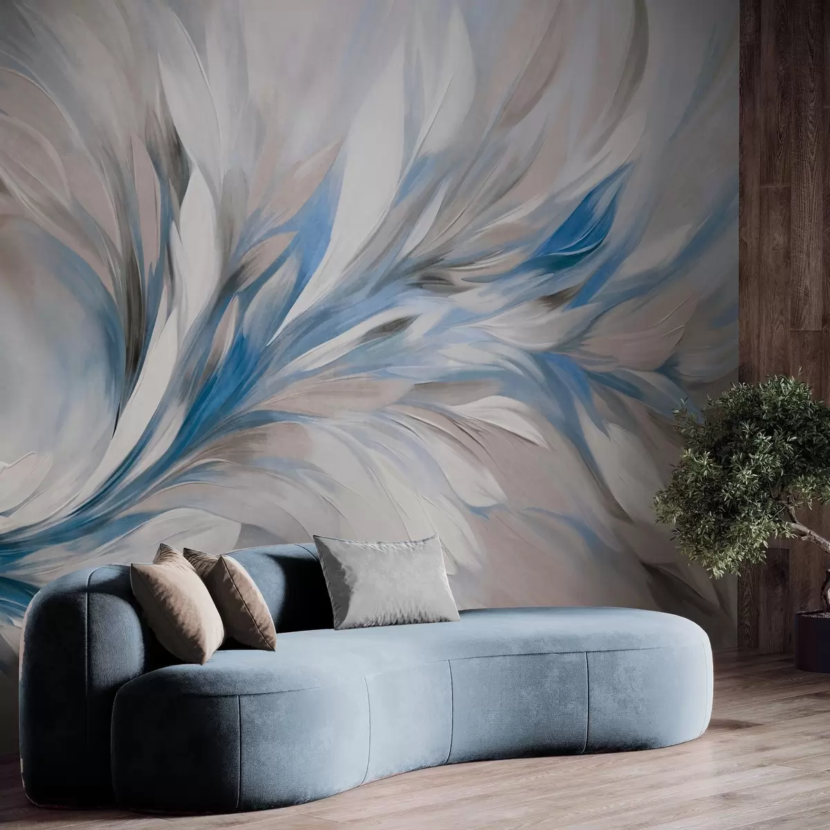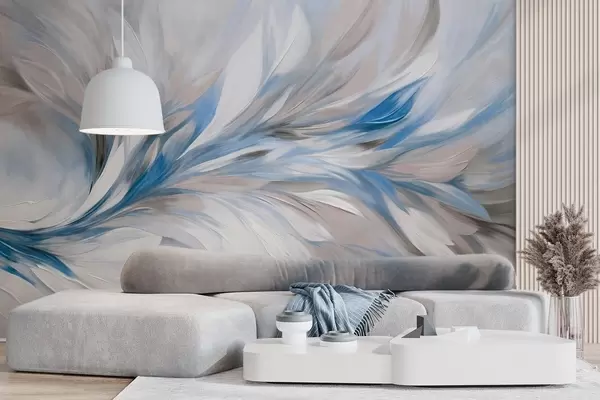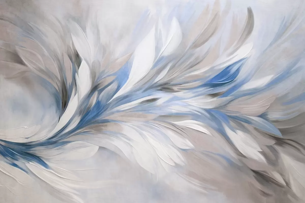 Fototapeter Abstrakt malestil med hvite, blå og grå teksturerte penselstrøk på en myk, lys bakgrunn Nr. w09552v1
