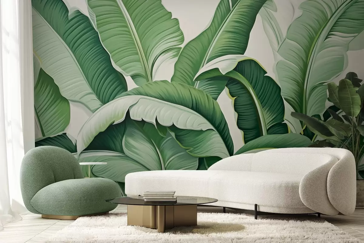 Fototapeter Grønne tropiske bananblader med 3D-effekt Nr. w09559