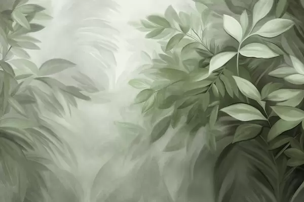 Fototapeter Brune og beige blader med mykt, uskarpt teksturert løvverk, i en malerisk stil med synlige penselstrøk. Nr. w09584