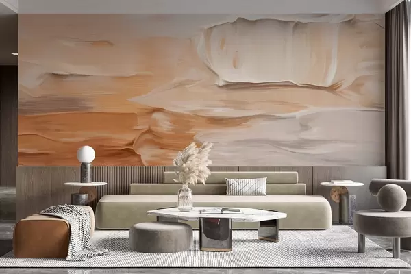 Fototapeter Abstrakt teksturert penselstrøk-imitasjon i varme jordfarger som beige, krem og brun, moderne kunst Nr. w09588