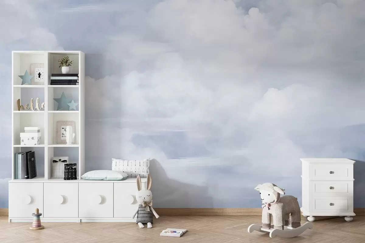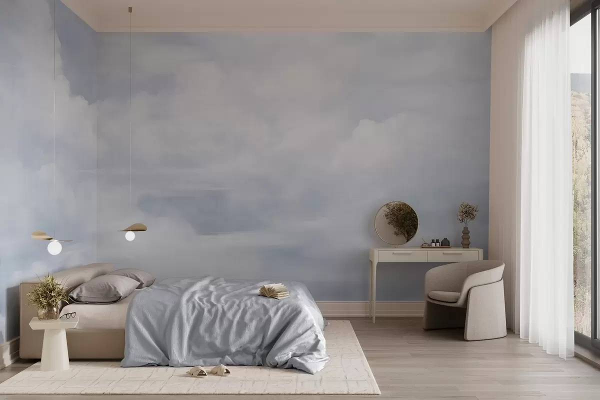Fototapeter Pastellfarget himmel med hvite skyer og en myk og minimalistisk estetikk Nr. w09589