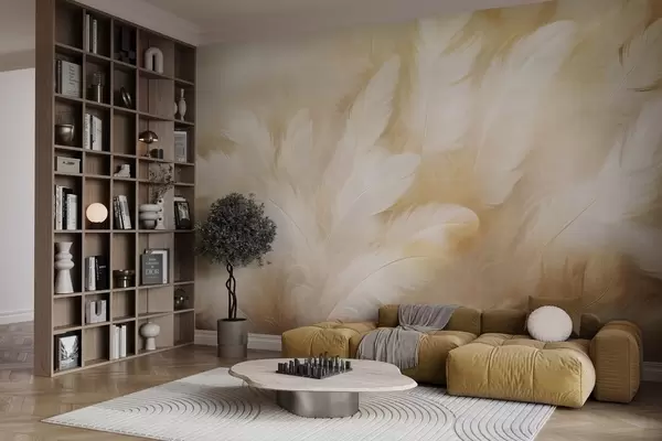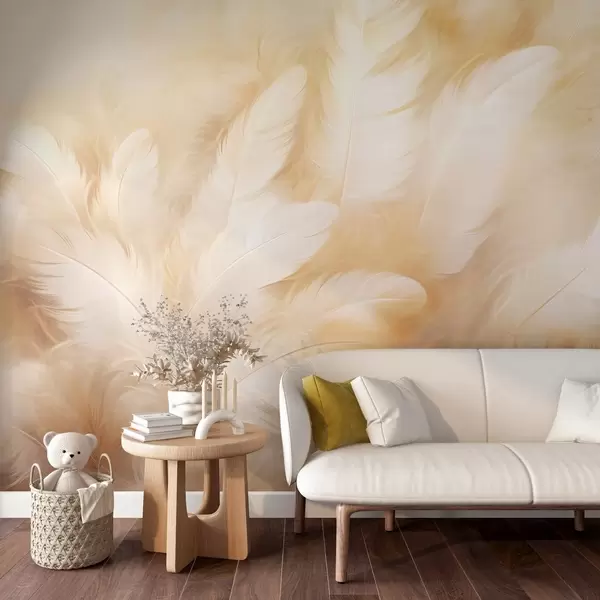 Fototapeter Hvite og gule fjær med myk tekstur Nr. w09606