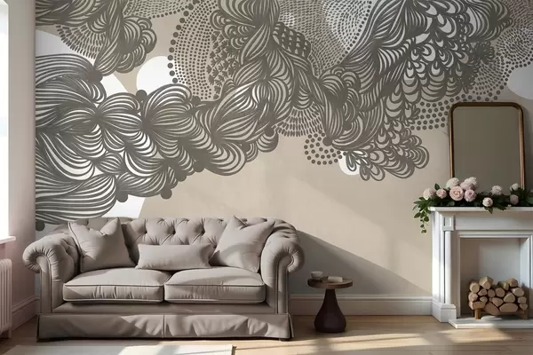 fototapeter Abstrakt strukturert design på beige bakgrunn, med intrikate linjer og prikkete strukturer. w09621