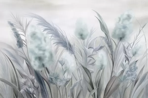 Fototapeter Rosa og beige pampasgress og andre tørkede blomster med en myk, disig himmel i bakgrunnen Nr. w09635