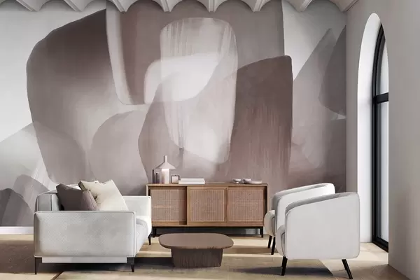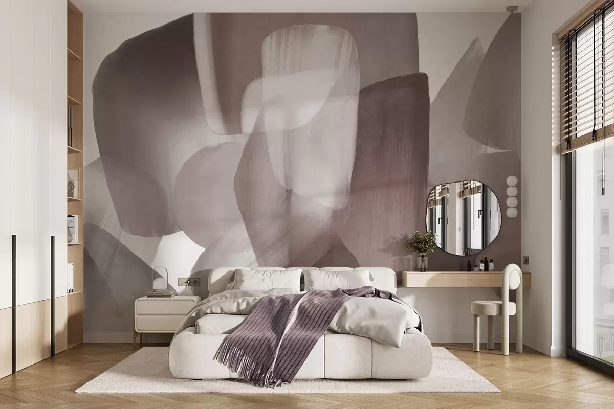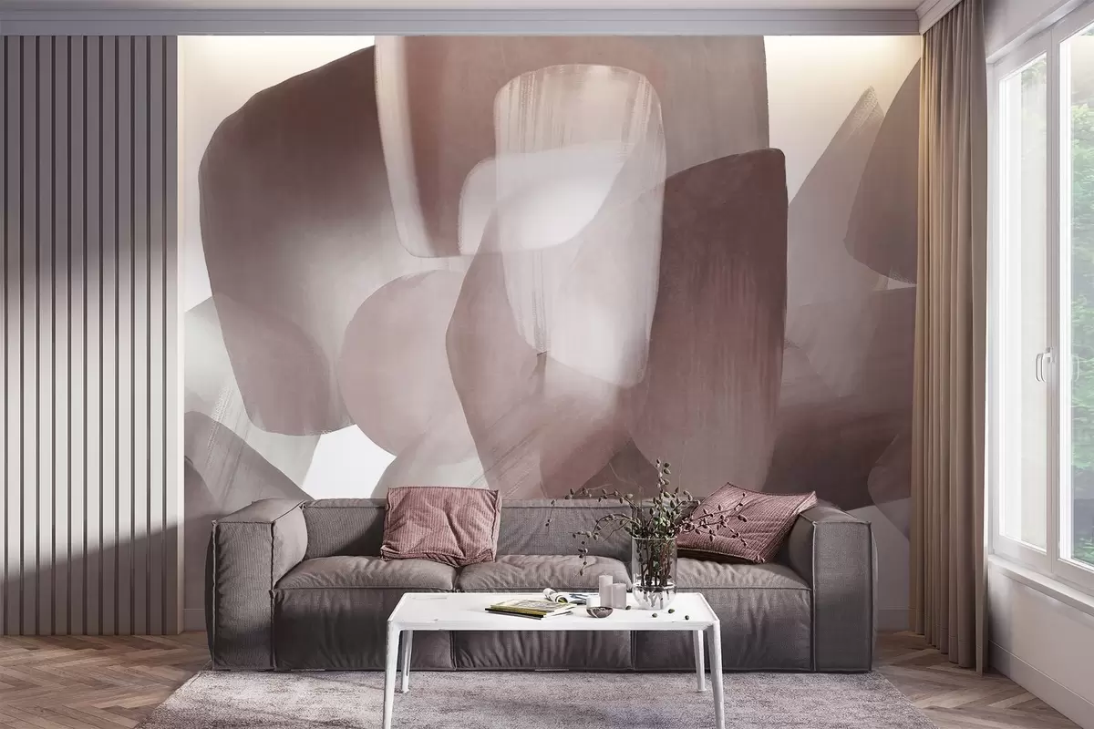 Fototapeter Abstrakte former med struktur i dempede burgunder- og gråfarger, med myke kanter og overlappende lag. Nr. w09642v2