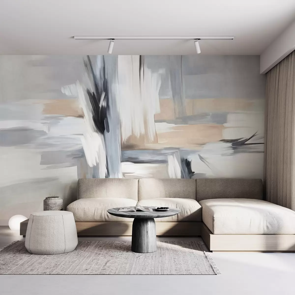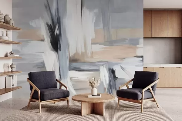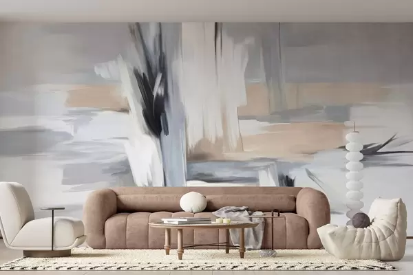 Fototapeter Abstrakt teksturert malestil med penselstrøk i nyanser av hvitt, grått og beige Nr. w09651