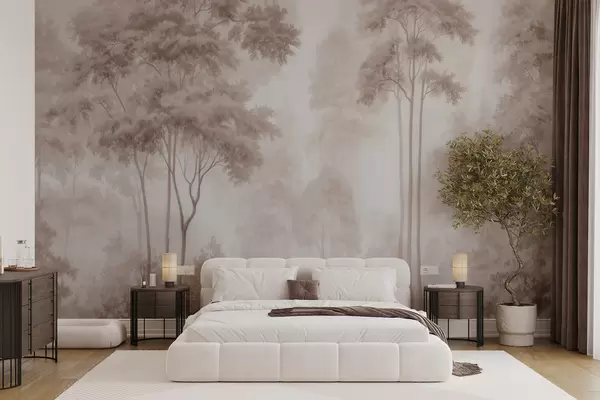 Fototapeter Et abstrakt skoglandskap i røykfargede beige toner med en følelse av dybde Nr. w09657