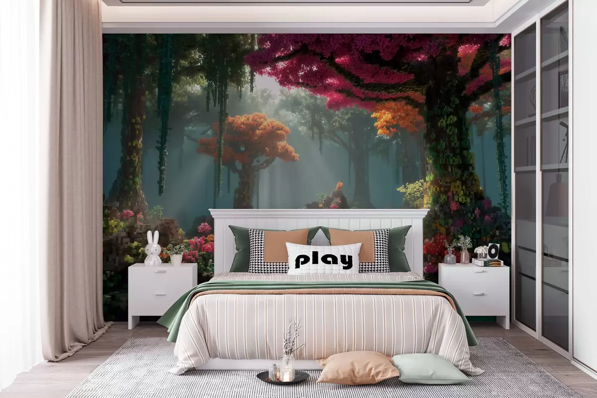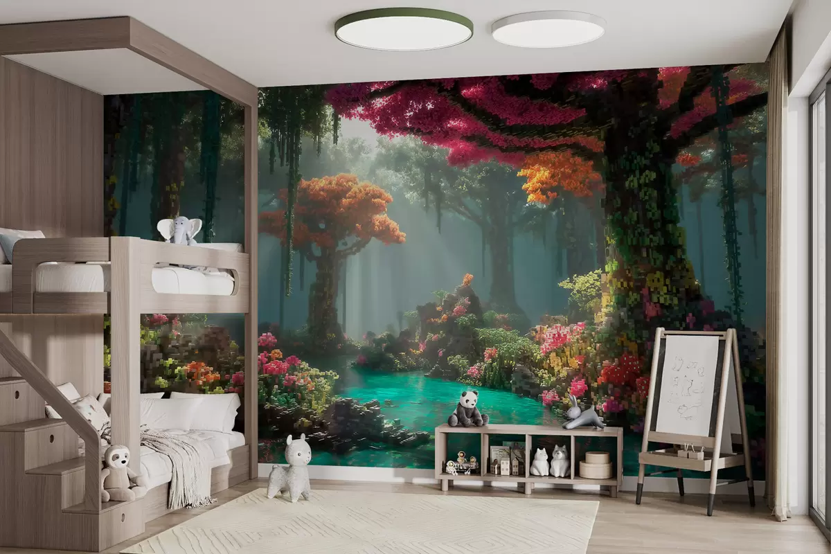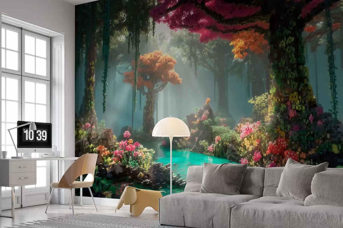 Fototapeter En skogholt i Pixel-stil inspirert av videospill Nr. w09683