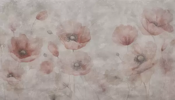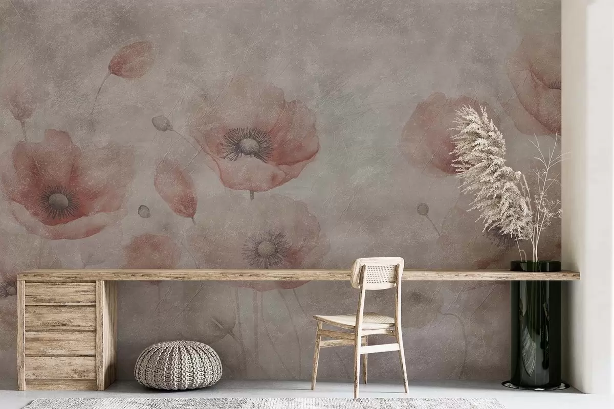 Fototapeter Store valmueblomster på en vegg med antikk effekt Nr. w09686