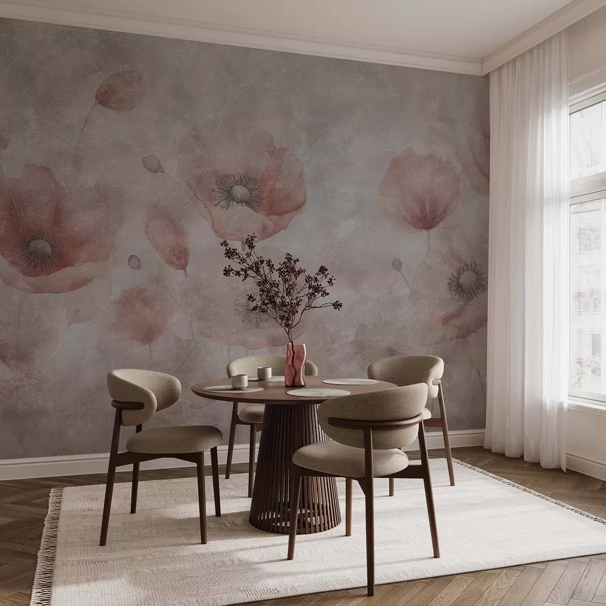 Fototapeter Store valmueblomster på en vegg med antikk effekt Nr. w09686