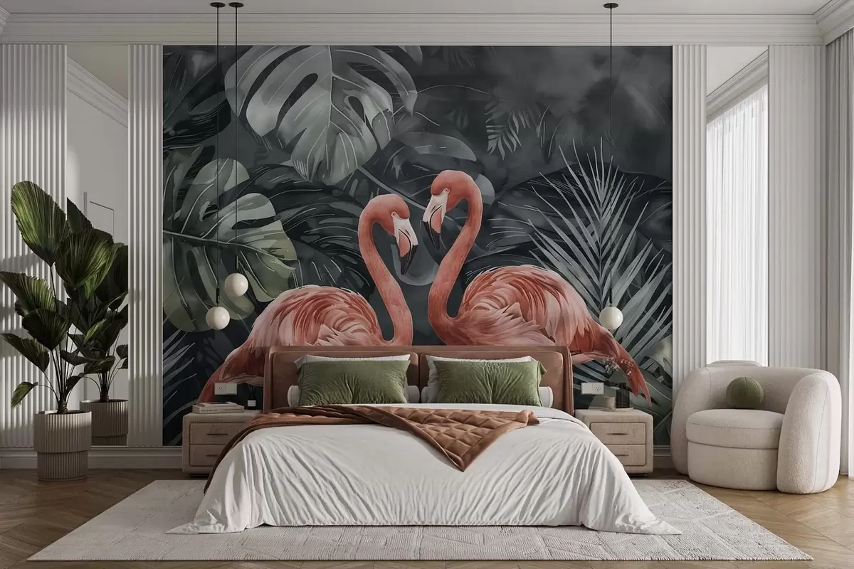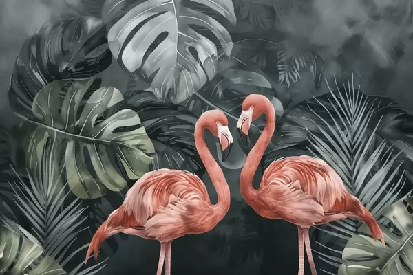 Fototapeter Et par flamingoer blant tropiske planter Nr. w09687