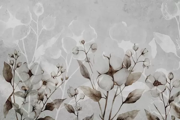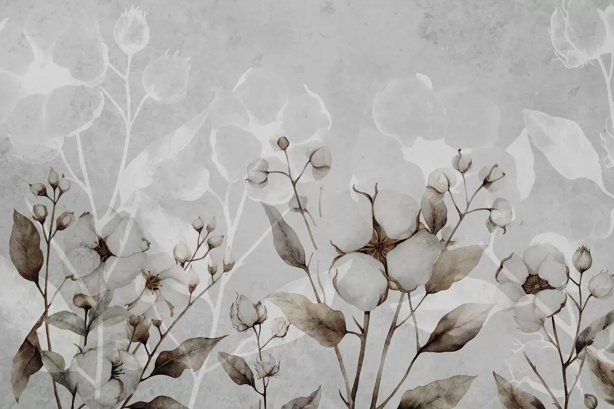 Fototapeter Store bomullsblomster på lysegrå bakgrunn Nr. w09691