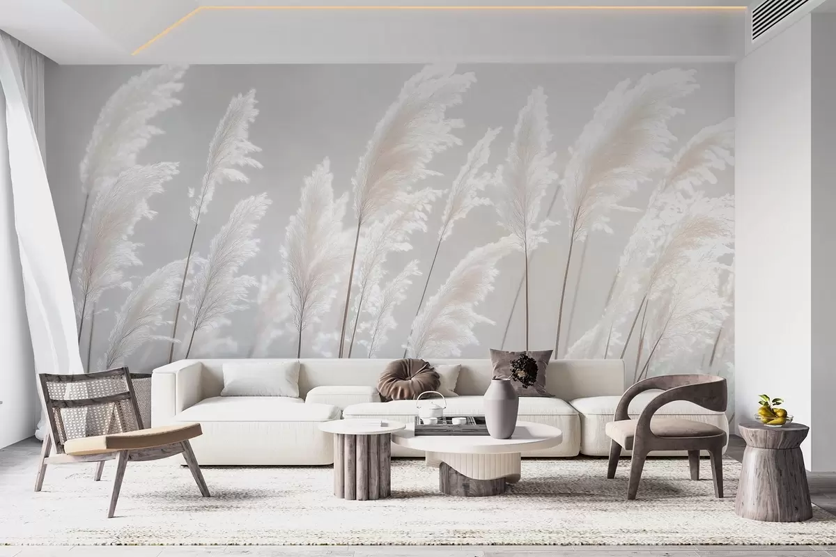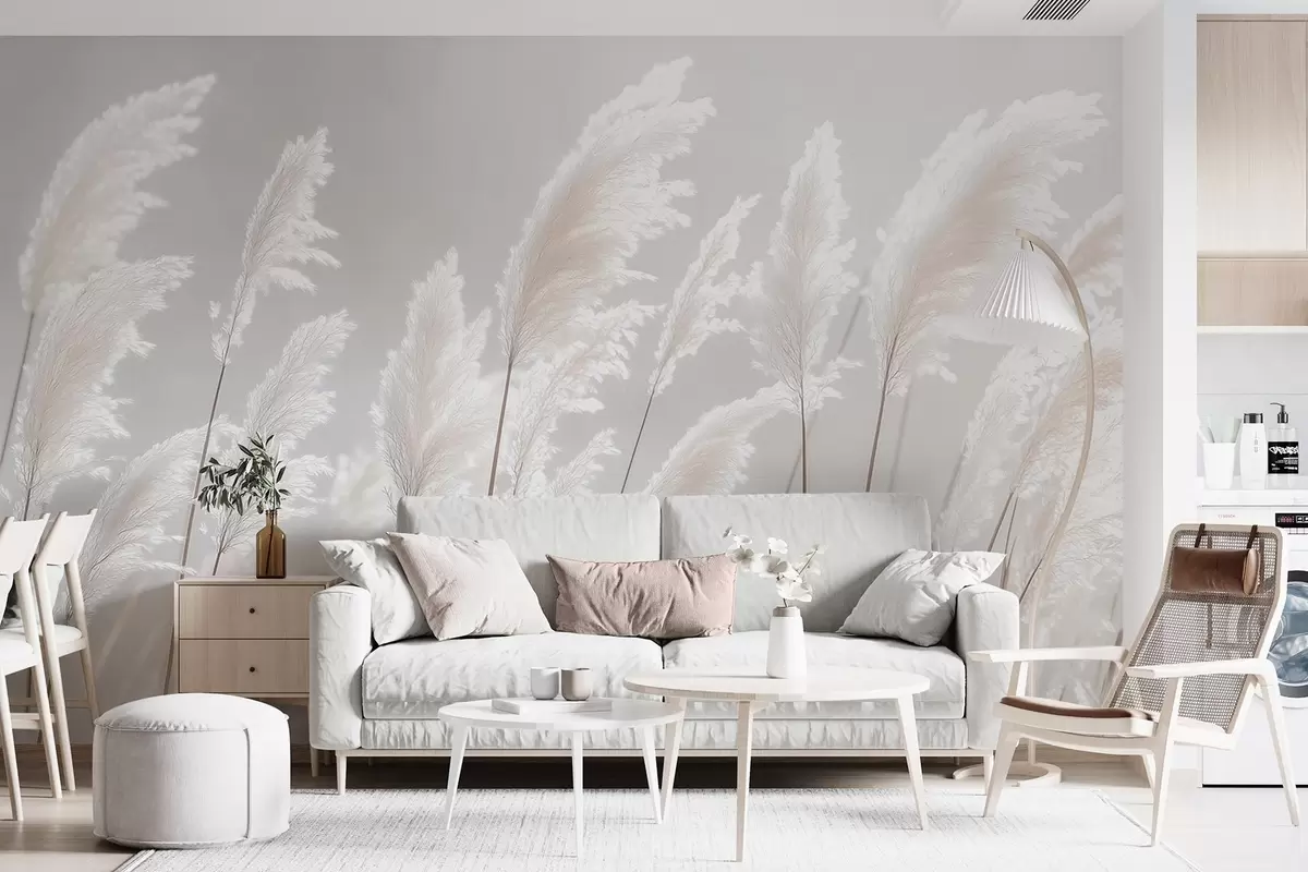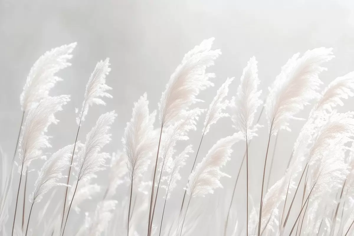 Fototapeter Mykt hvitt pampasgress i mildt morgenlys Nr. w09717