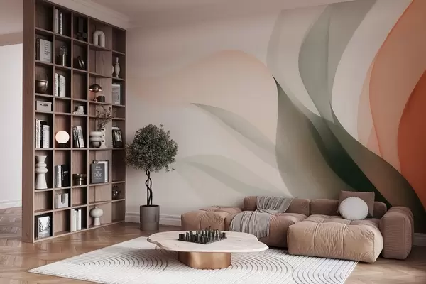 Fototapeter Abstrakte pastellbølger i oransje og grønne toner Nr. w09718