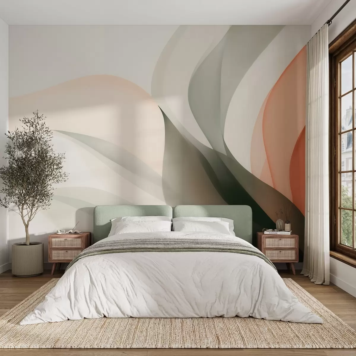 Fototapeter Abstrakte pastellbølger i oransje og grønne toner Nr. w09718