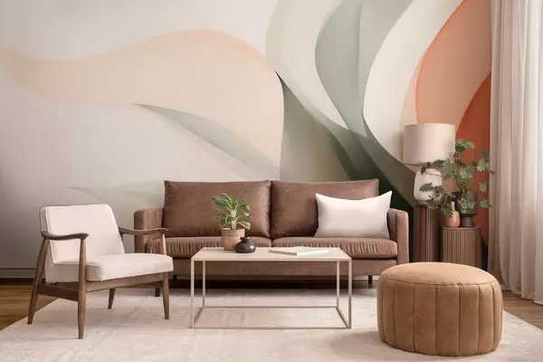 Fototapeter Abstrakte pastellbølger i oransje og grønne toner Nr. w09718