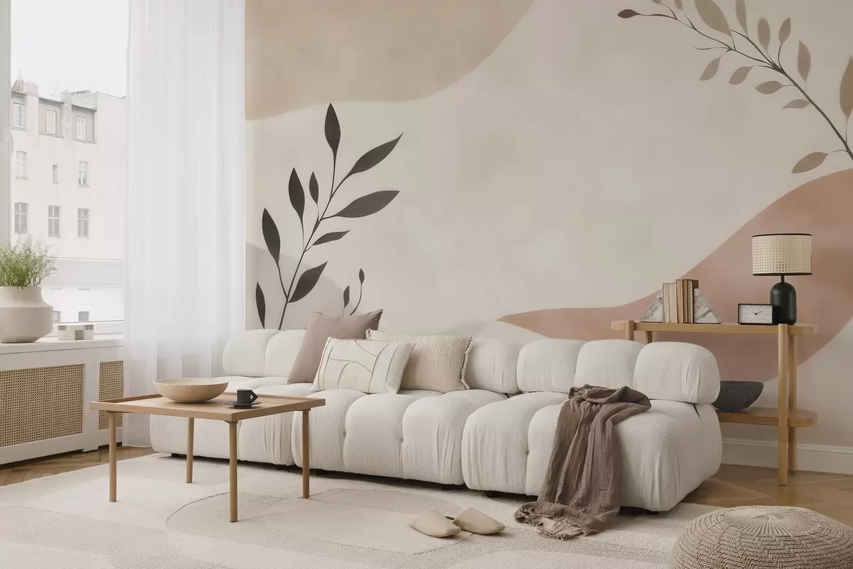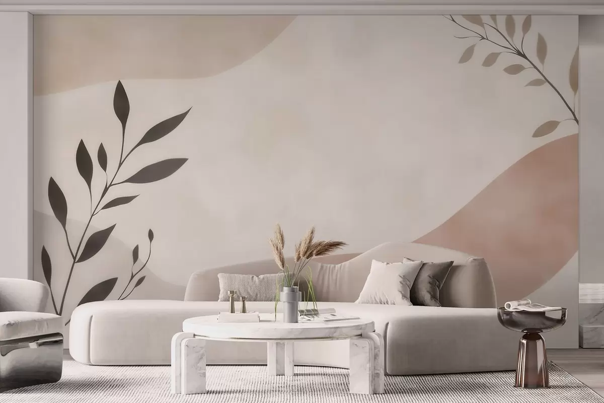 Fototapeter Abstrakte beige-ferskenfargede bølger med grener Nr. w09722
