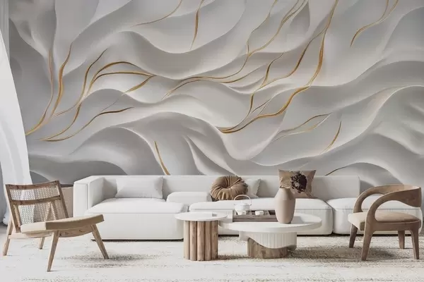 Fototapeter Grå pregede bølger med gule detaljer Nr. w09724