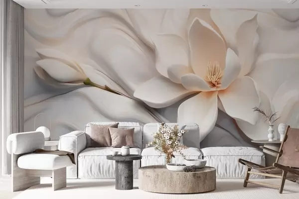 Fototapeter Tredimensjonal hvit magnolia med marmorteksturimitasjon i relieff Nr. w09729