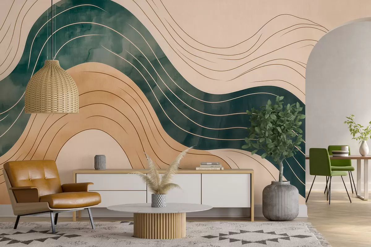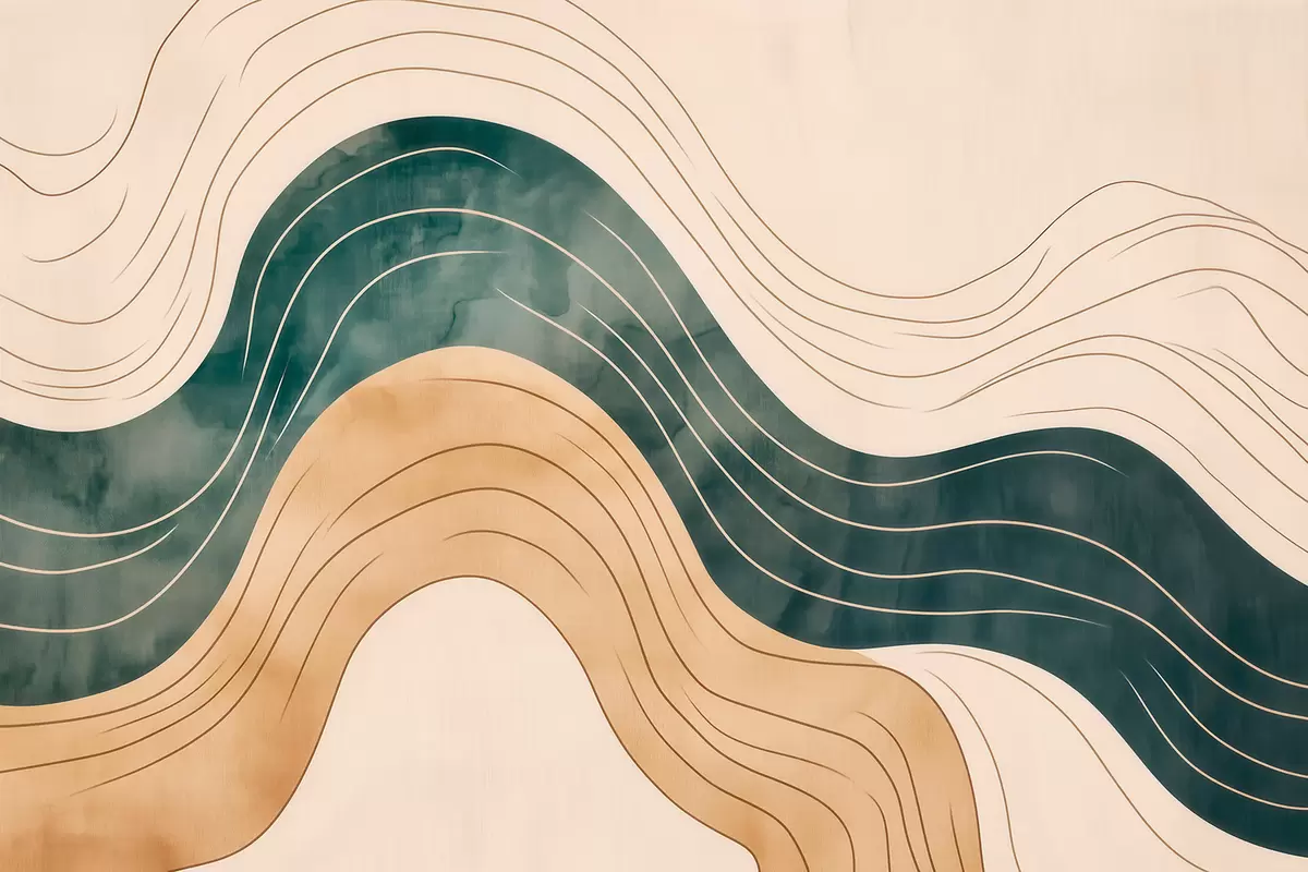 Fototapeter Abstrakte bølgelinjer i naturlige sand- og smaragdfarger Nr. w09732