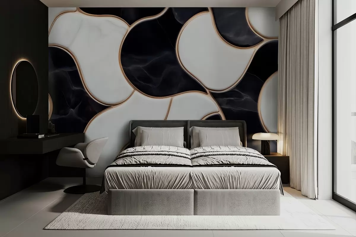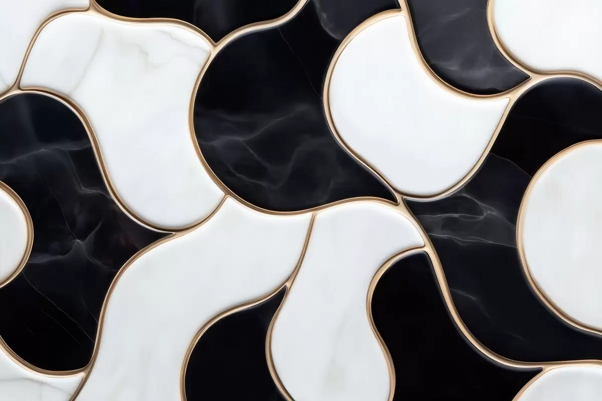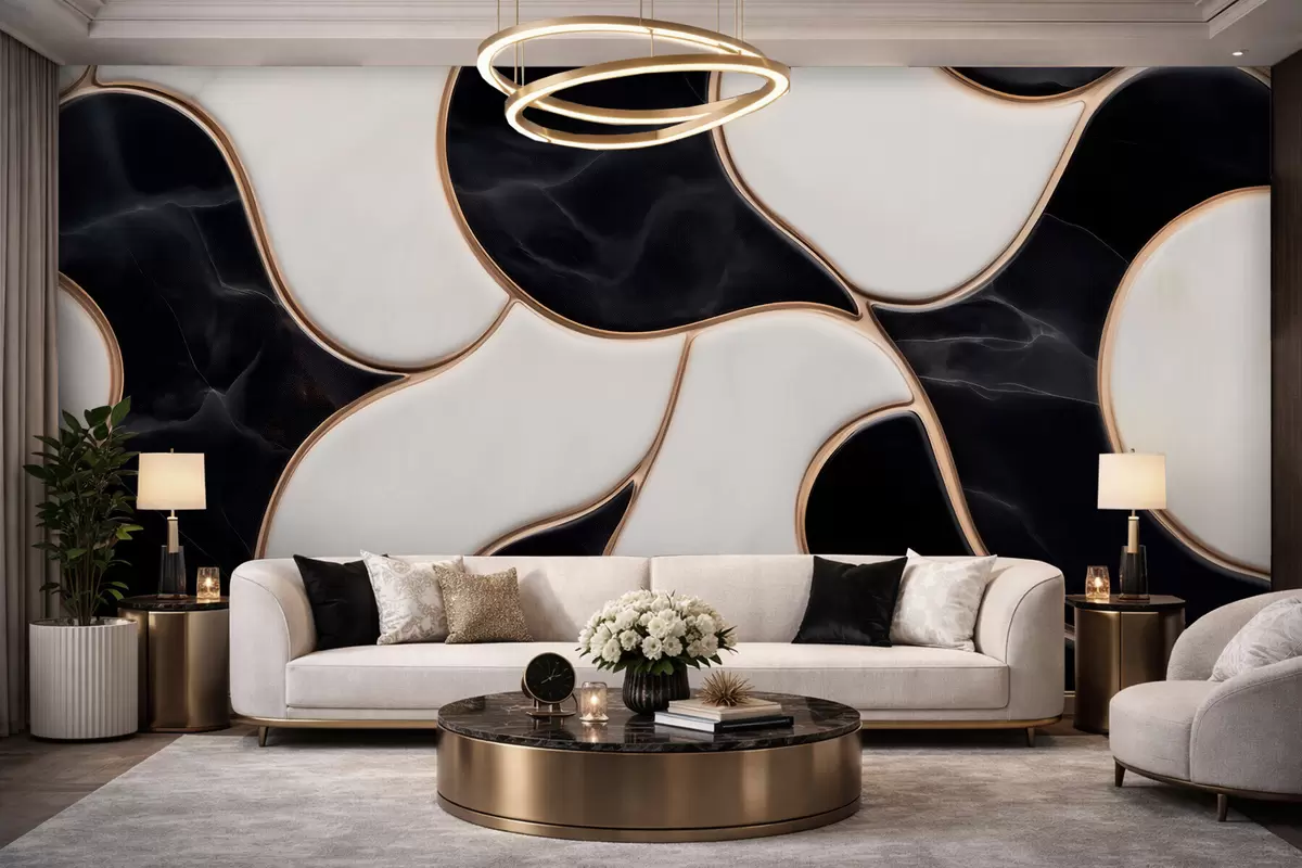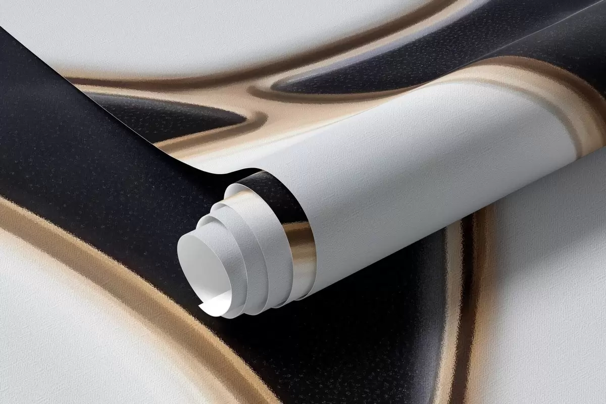 Fototapeter Abstrakt gjengivelse av en marmorkomposisjon i svart-hvite toner med gule linjer Nr. w09733