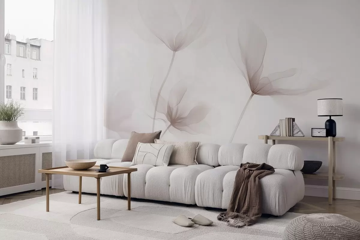 Fototapeter Luftige beige blomster i minimalistisk, lys stil Nr. w09734