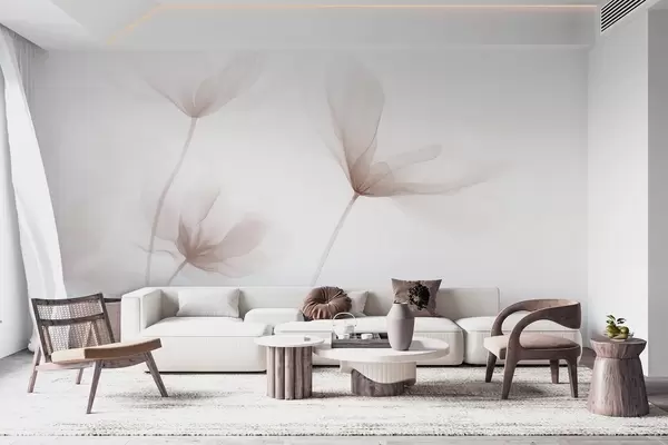 Fototapeter Luftige beige blomster i minimalistisk, lys stil Nr. w09734
