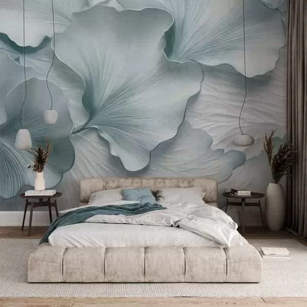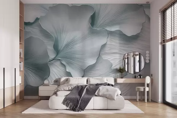 Fototapeter Teksturerte, blå og hvite ginkgoblader med delikat organisk trykk Nr. w09741v1