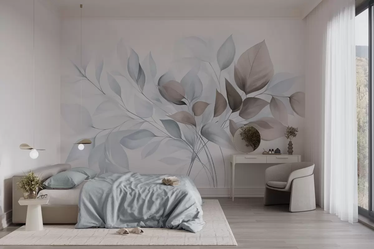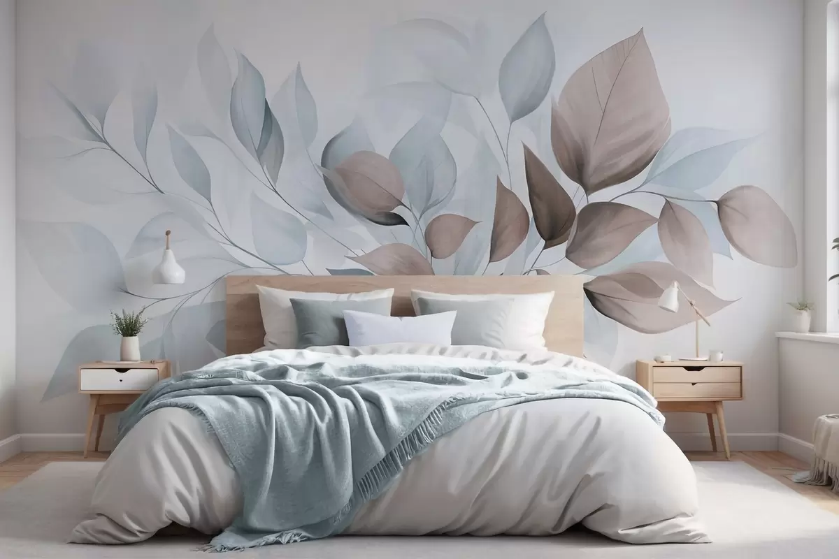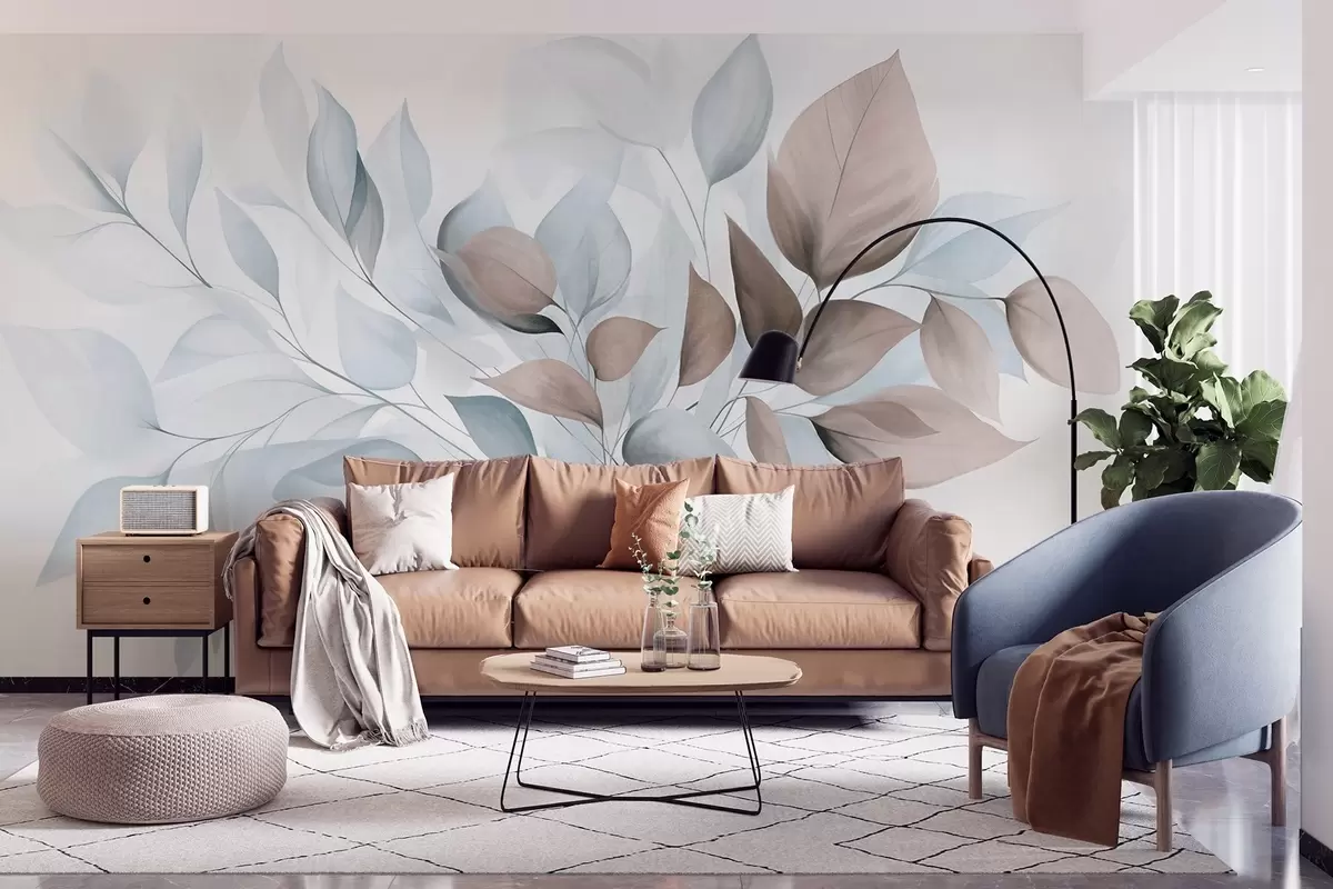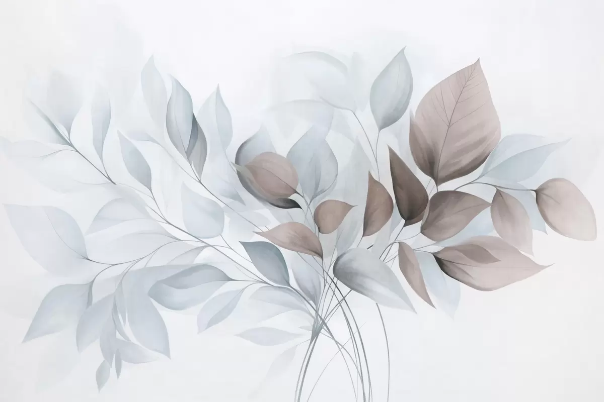 Fototapeter Abstrakte, gjennomsiktige blader i nyanser av blått, beige og brunt, strukturert kunst Nr. w09744v1