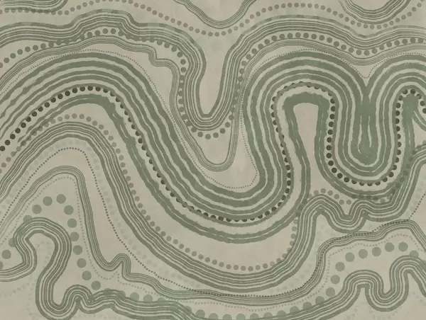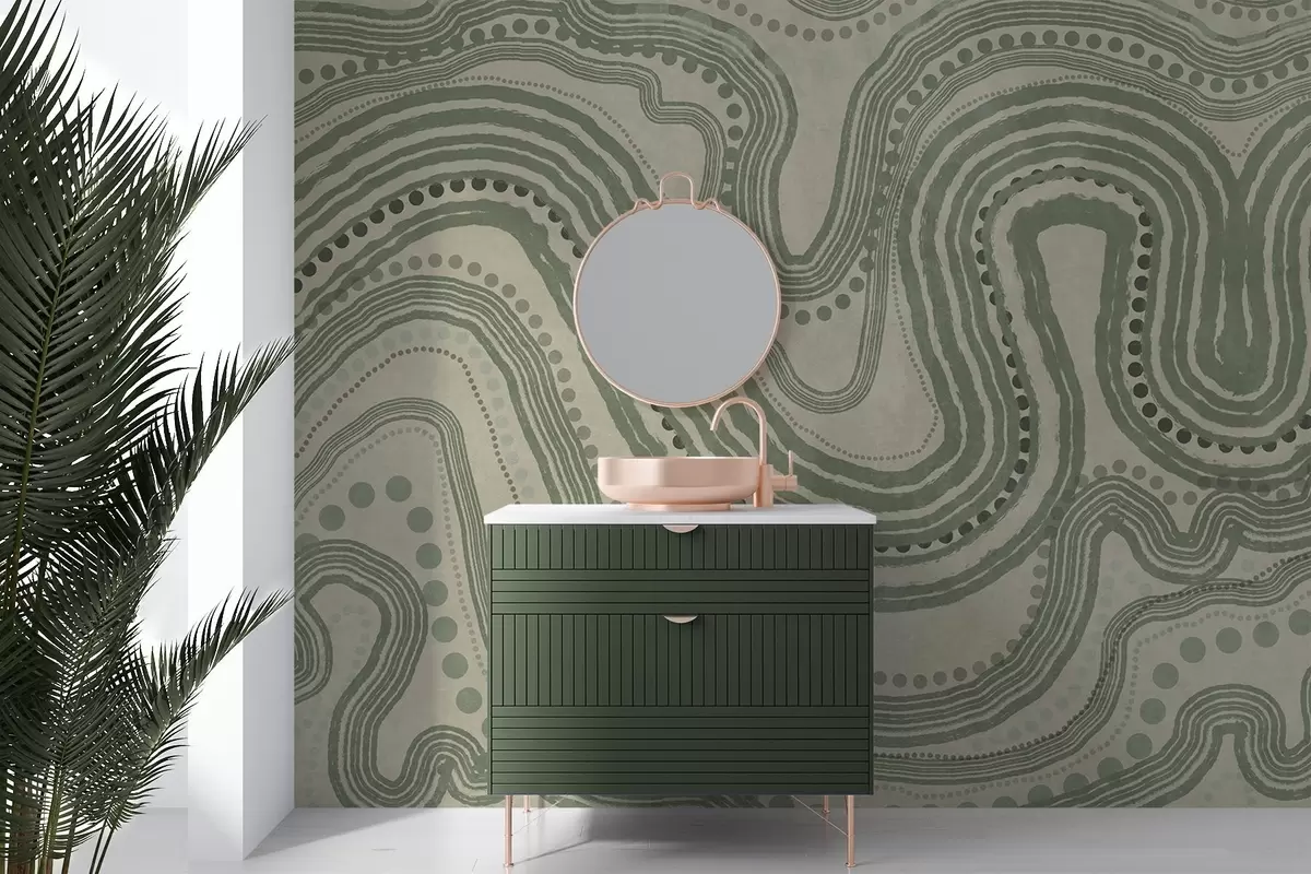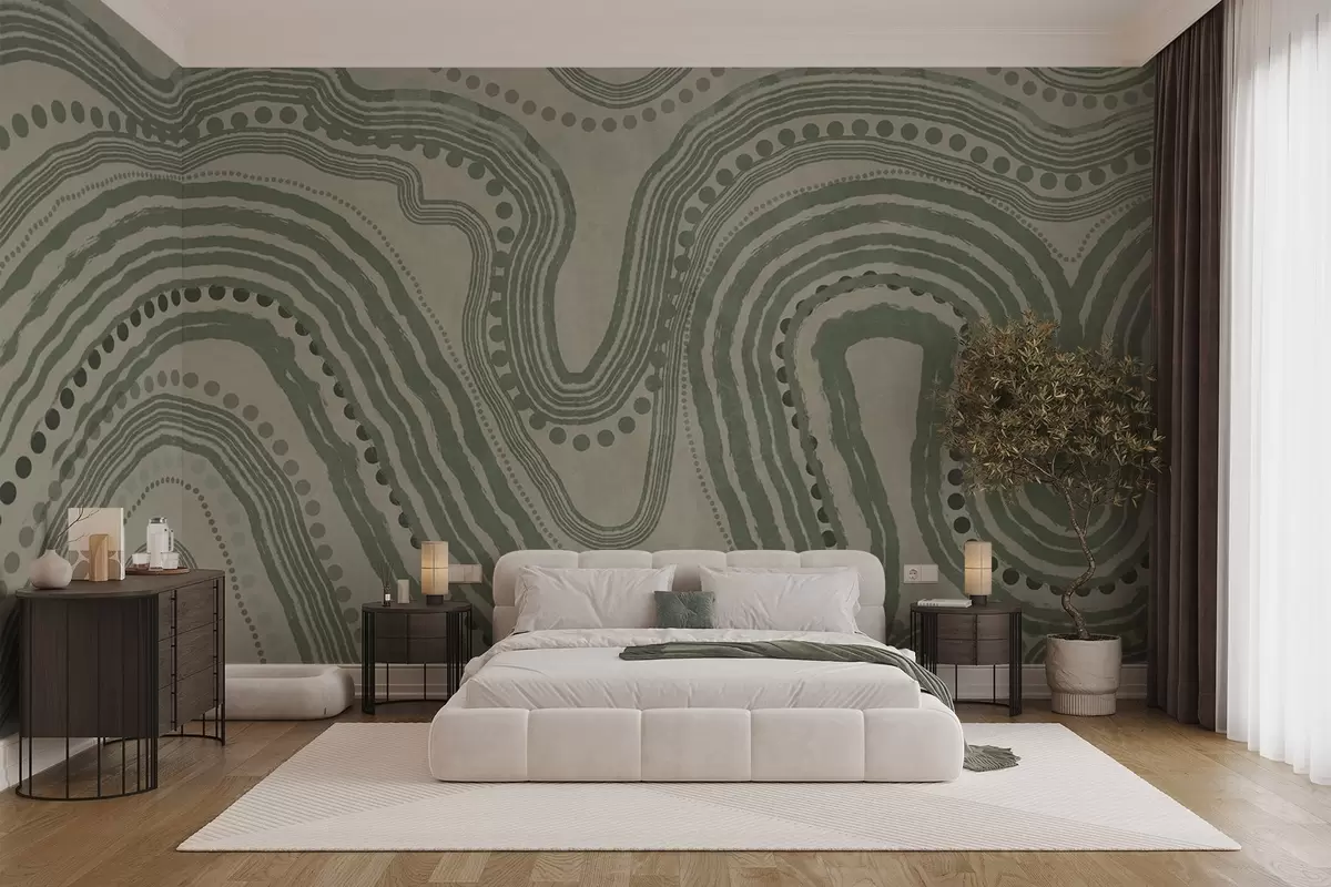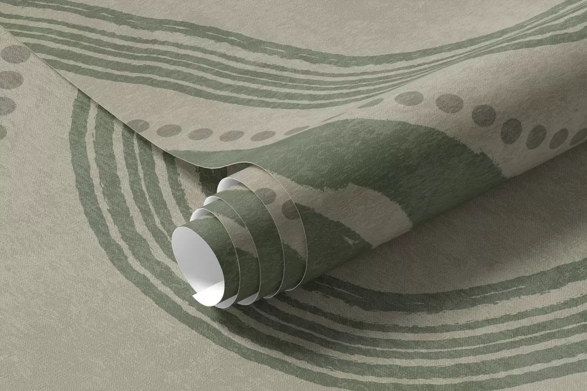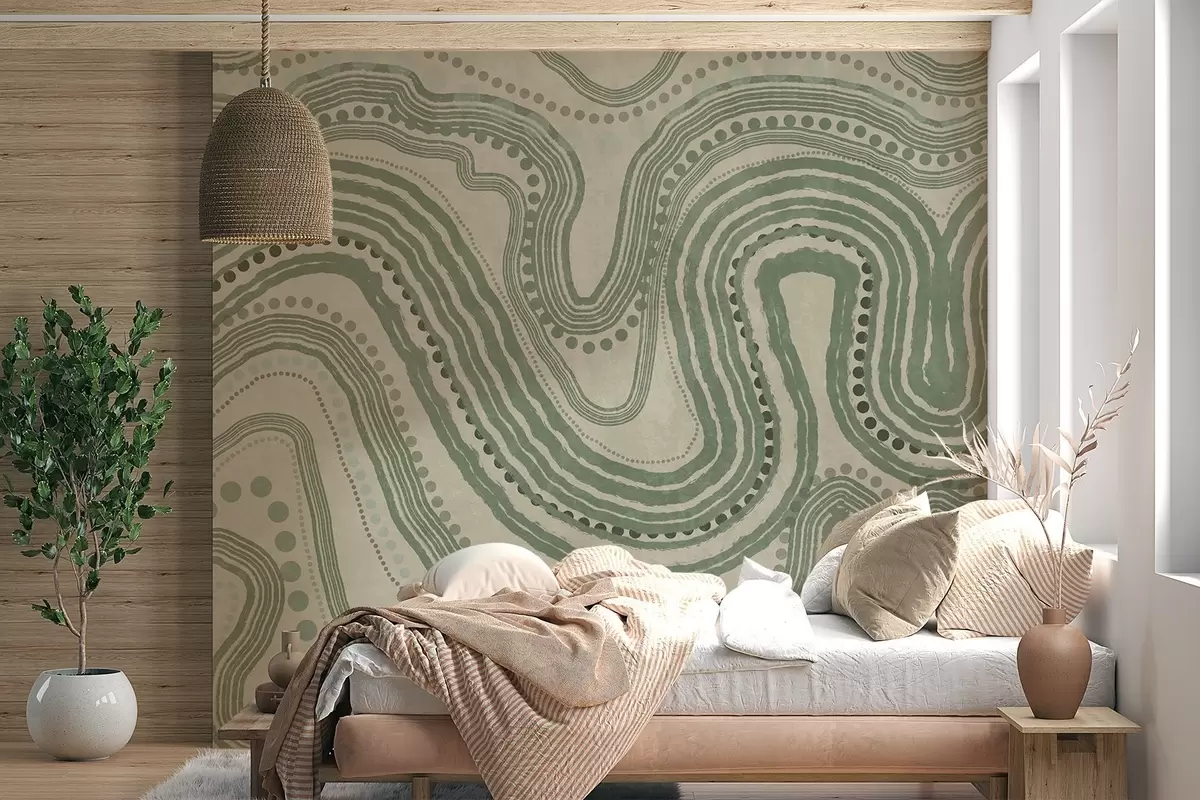 Fototapeter Abstrakte grønne og beige bølgelinjer og prikker, moderne teksturert kunst Nr. w09747