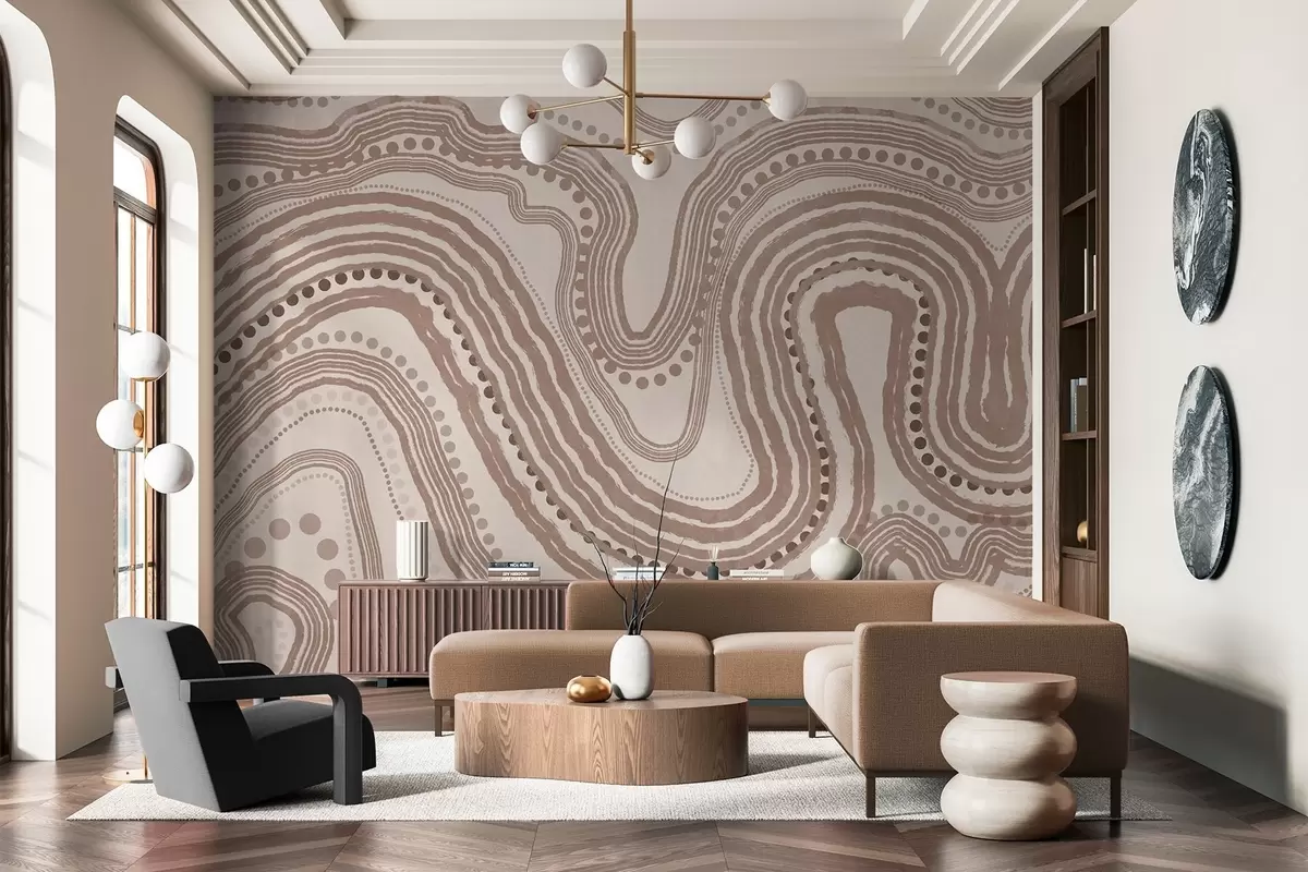 Fototapeter Abstrakte brune og beige bølgelinjer og prikker, moderne teksturert kunst Nr. w09747v1