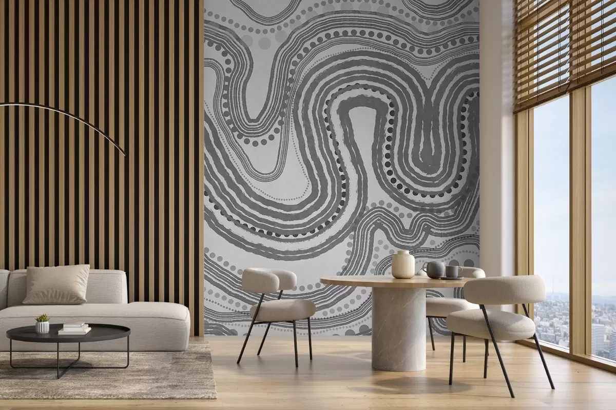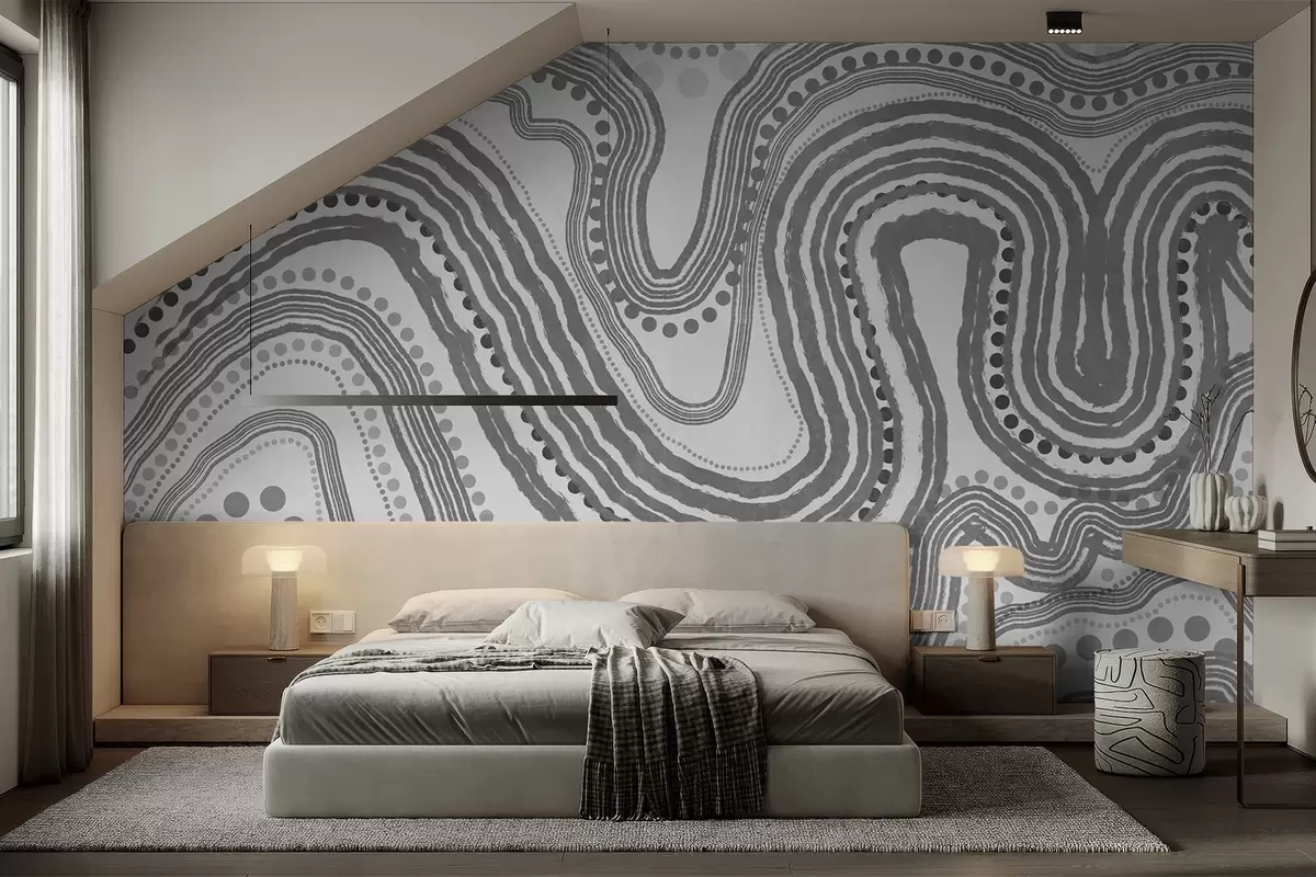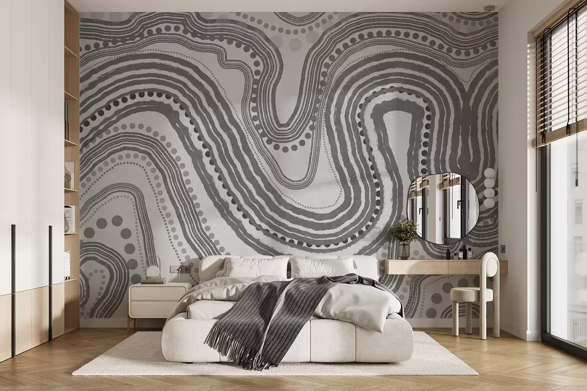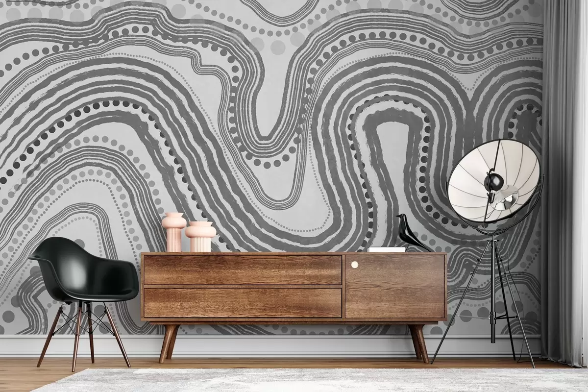 Fototapeter Abstrakte mørkegrå bølgelinjer og prikker, moderne teksturert kunst Nr. w09747v2